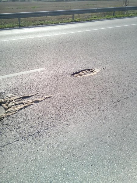 На главния път Русе - Разград - Шумен се отвориха дупки от които се подава нещо странно.