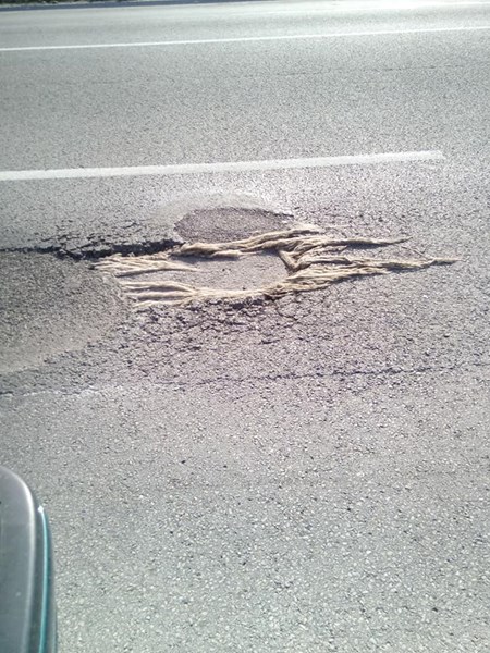 За сега нямаме логично обяснение каква всъщност е причинта за "брадясалите" дупки на този участък от пътя.