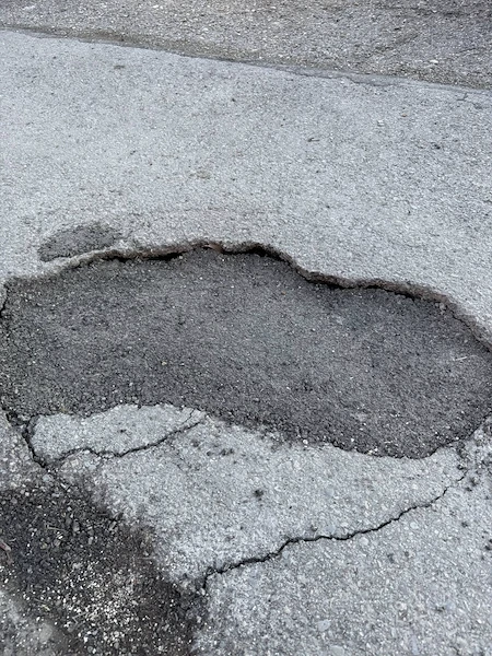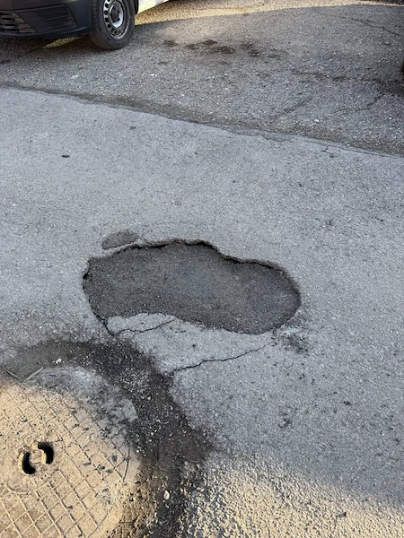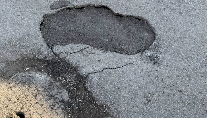 Асфалтът на прясно запълнена дупка в Русе пропадна отново