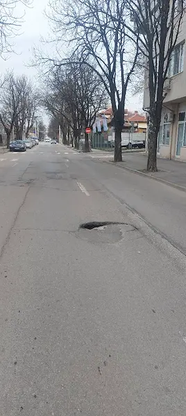 Опасно пропадане на пътната настилка на улица „Стефан Стамболов“ 41 в Русе създава сериозна предпоставка за пътнотранспортни произшествия и материални щети. Сигналът беше подаден от русенката Десислава Кръстева, която алармира в социалните мрежи, че дупката се разраства ежедневно и застрашава трафика.