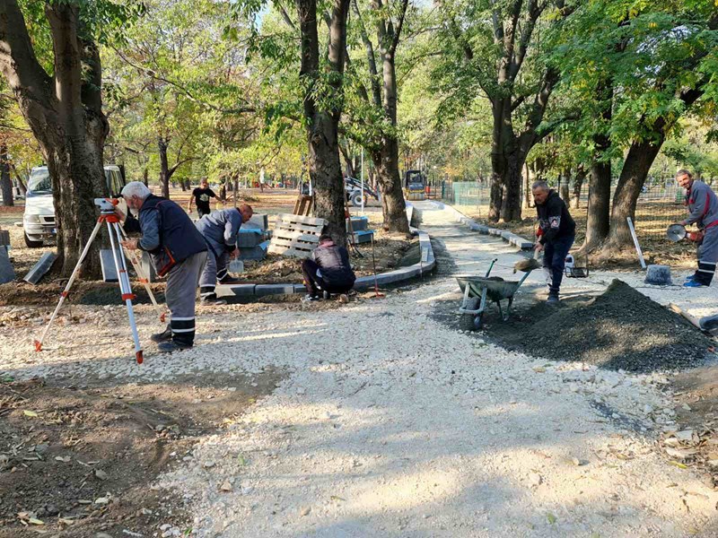 - положена бе изцяло нова настилка по 5 основни пешеходни алеи в Парка на възрожденците;