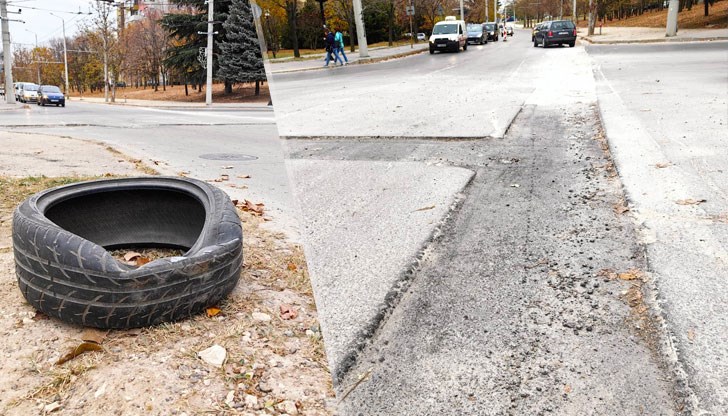 От дружеството обещаха, че до края на месеца ще бъдат асфалтирани всички големи кръстовища в Русе. Една седмица по-късно виждаме, че траповете на едно от кръстовищата в един от най-големите квартали на града вече са асфалтирани. Но за зла участ на шофьорите асфалтът се оказва лека замазка. Резултатът са трапове с остри ръбове от над 5 см, което принуждава шофьорите буквално да спират в самото кръстовище. За неразумните шофьори последствията са спукани гуми и изкривени джанти.