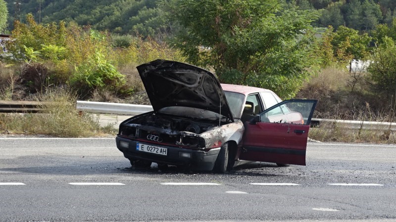 Лек автомобил "Ауди" 80 се запали в движение на Е-79 край Благоевград, загасиха я пожарникари, няма пострадали.