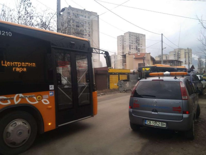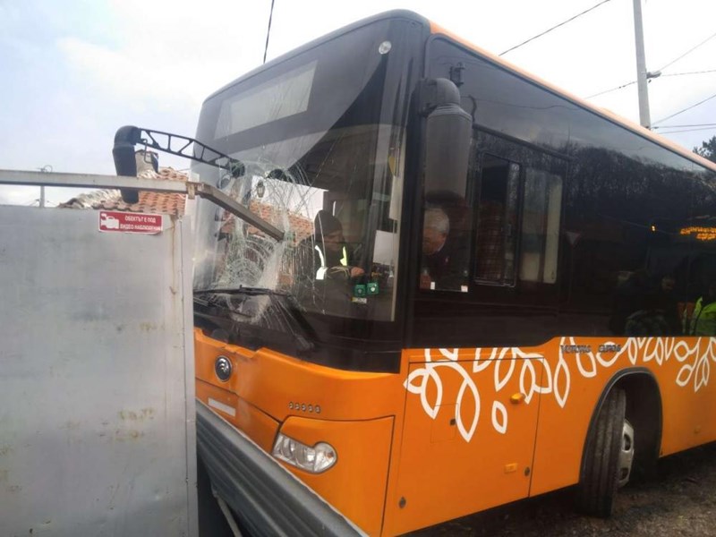 Автобус по линия 77 се заби в оградата на къща на ул. "Суходолска" малко след 15 часа.