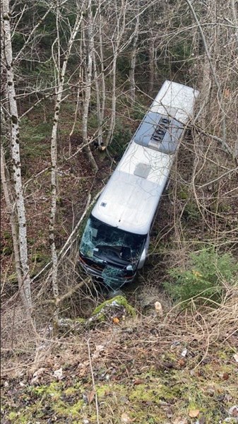 Всички деца са били с колани. На снимка, публикувана онлайн, се вижда как автобусът, оплетен в изсъхнали клони и с разбито предно стъкло, е се е свлякъл по склона на дефиле.