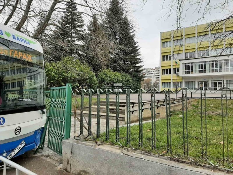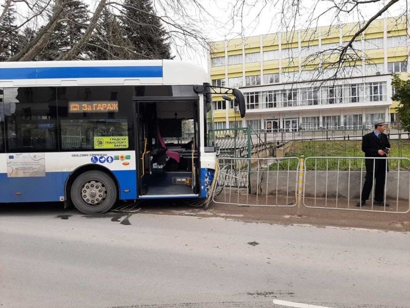 Автобус на градския транспорт се удари в спирка до гимназията по химия във Варна.