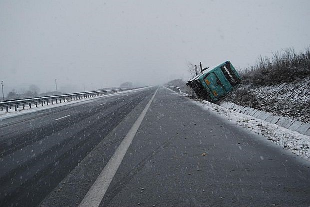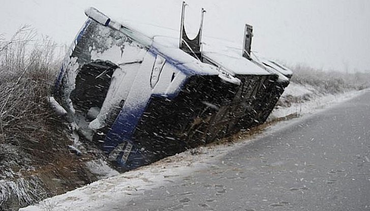 Обърнал се е пътнически автобус на една от големите фирми, движещ се по линията Каварна-София. Автобусът е тръгнал снощи около 22.00 часа от Каварна.