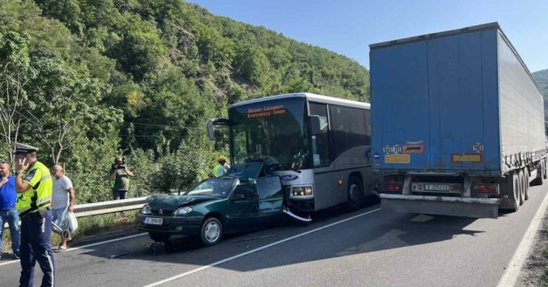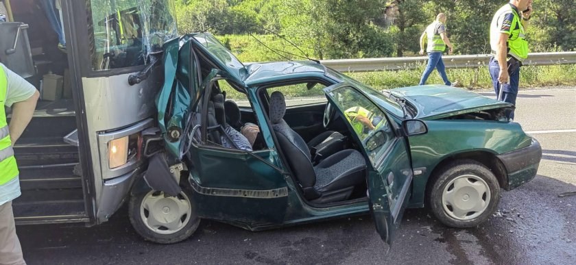 Автобус се заби в кола на пътя Благоевград - Симитли