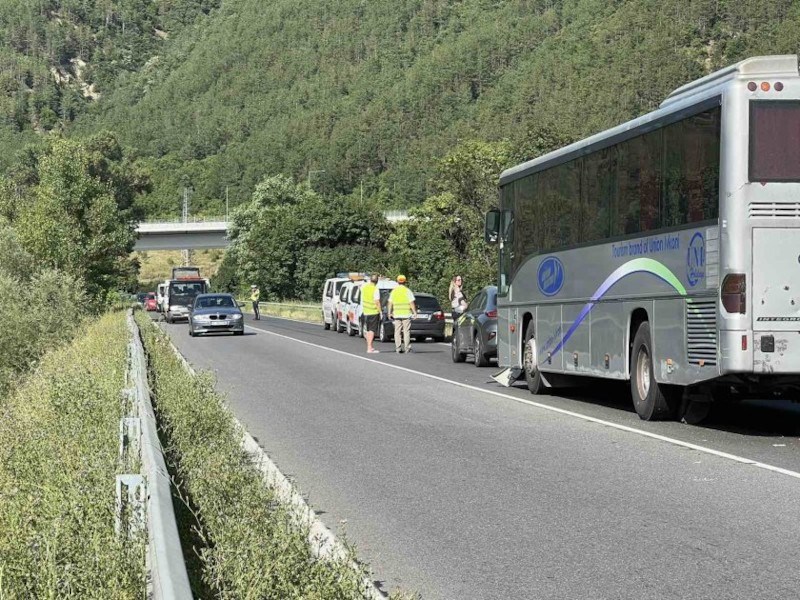 Катастрофа между автобус и лек автомобил затруднява движението на пътя между Благоевград и Симитли. Инцидентът е станал минути преди 17:00 часа, информира БНТ.