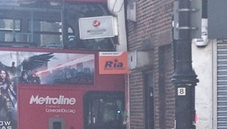 По сведения на очевидци явно неуправляемият червен автобус първо е помел стълба на светофара, след което се врязъл челно в сградата като разбил витрината на магазина.