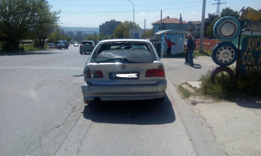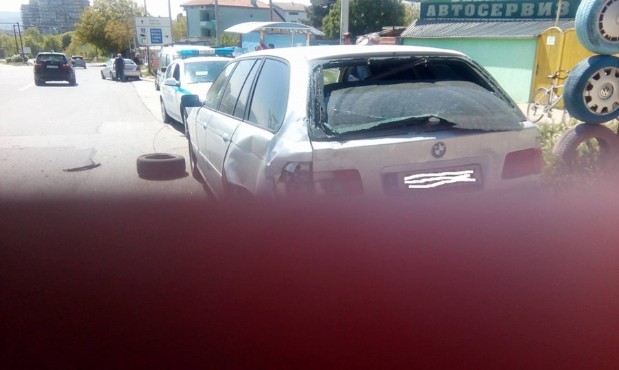 Читател на Рetel.bg изпраща снимки, от които се вижда, че след сблъсъка има материални щети по задните части на "Фолксваген" и "БМВ", чийто задно стъкло е потрошено.