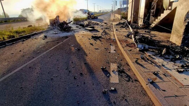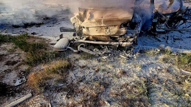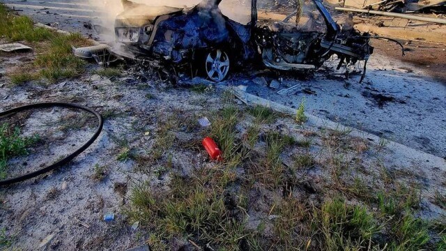 Автомобил се изгорял напълно, разказва очевидец. Лукан Геров е видял още, че човек е приклещен между ламарините.