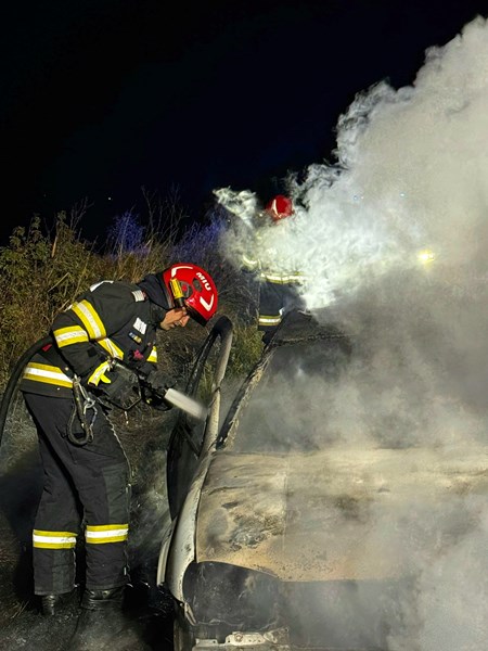 Тази сутрин на пътя DJ 503A между населените места Раду Вода и Извоареле в окръг Гюргево, Румъния, автомобил бе напълно унищожен от пожар. На мястото пристигнаха екипи на Инспектората за извънредни ситуации (ISU) Гюргево с пожарна кола, линейка и полиция, съобщиха румънските власти.