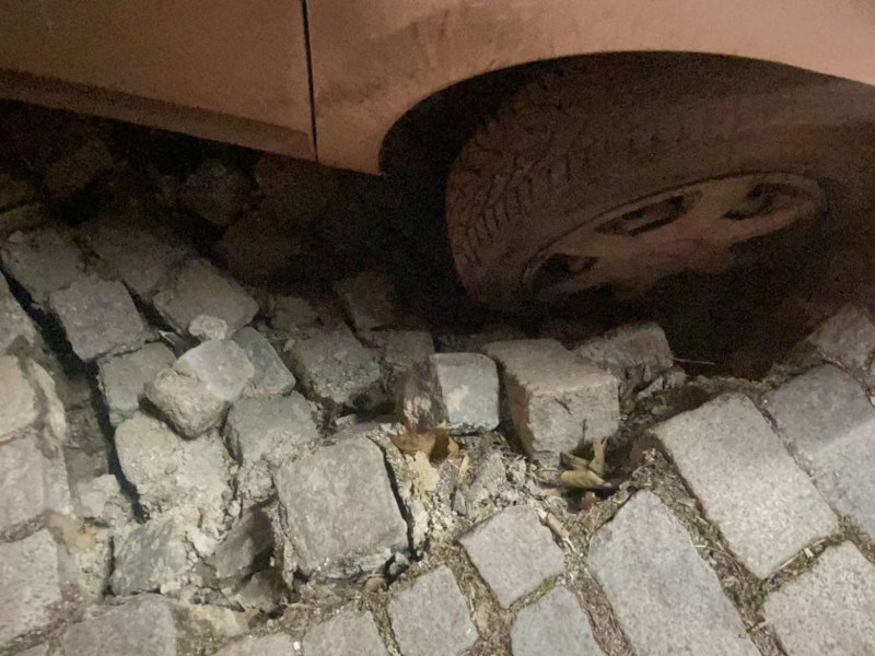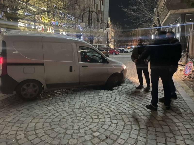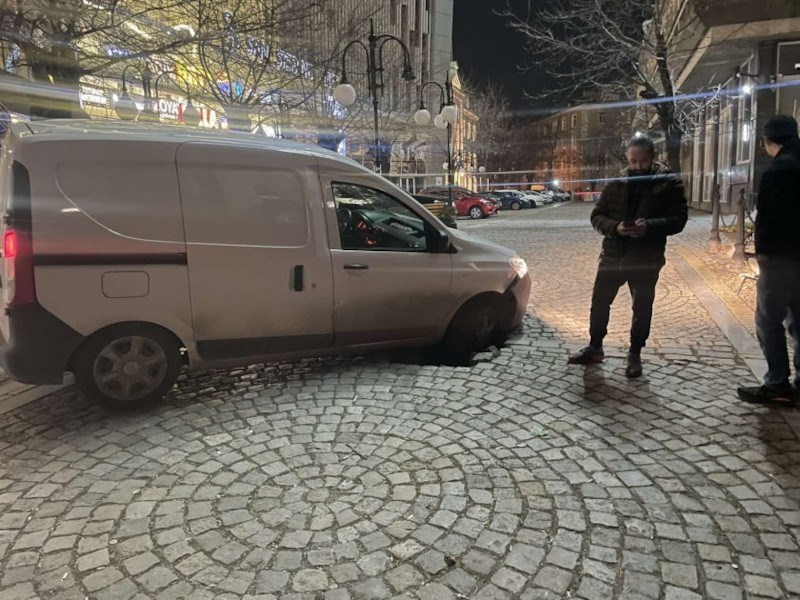 Автомобил пропадна в дълбока дупка на столичната улица "Сан Стефано" до сградата на Българската национална телевизия.