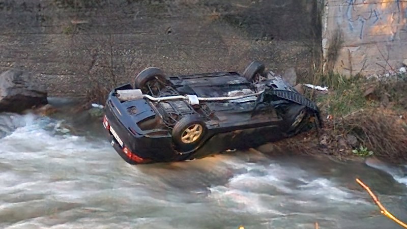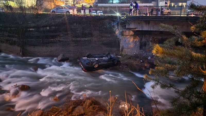 Инцидентът е станал на околовръстния път в областния град, когато автомобилът се е движел по улица "Петър Берон". След завой возилото е излязло от пътното платно, съборило е предпазната ограда и е паднало по таван от височина над четири метра във водите на реката.