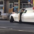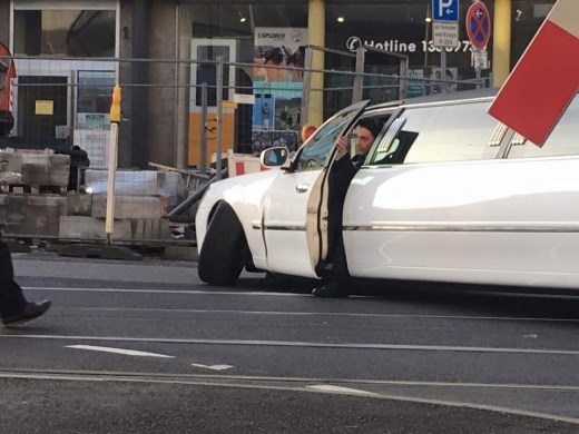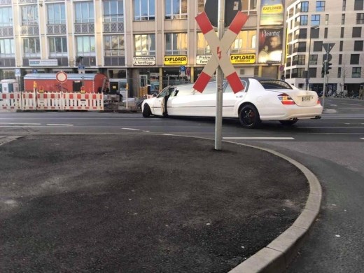 И постна няколко снимки, на които ясно се вижда, че предното ляво колело на луксозната лимузина е килнато в следствие на повредата.