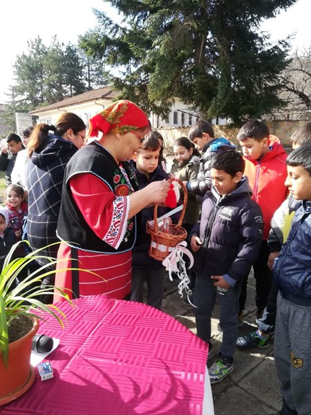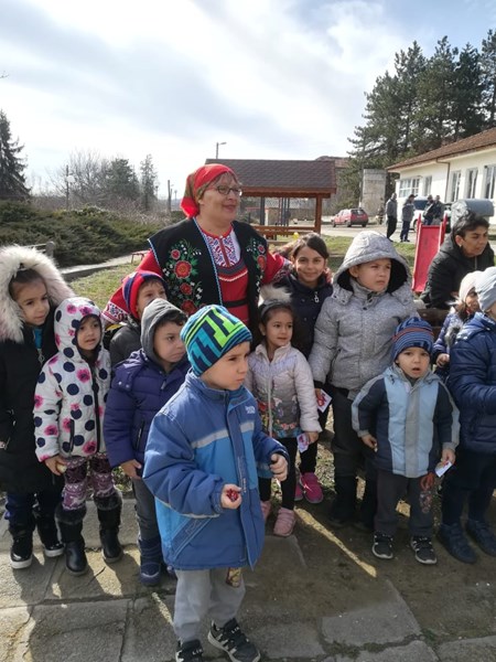„Тази година ритуалът за посрещане на предвестниците на пролетта беше променен. Учителките предварително започнаха да подготвят децата, че не са били много послушни и са разсърдили добрата старица. Момичетата и момчетата обаче твърдо бяха решили да не остават без мартенички“, разказва читалищният секретар Петя Герасимова. Децата предварително изплетоха традиционните символи на пролетта от бели и червени конци.