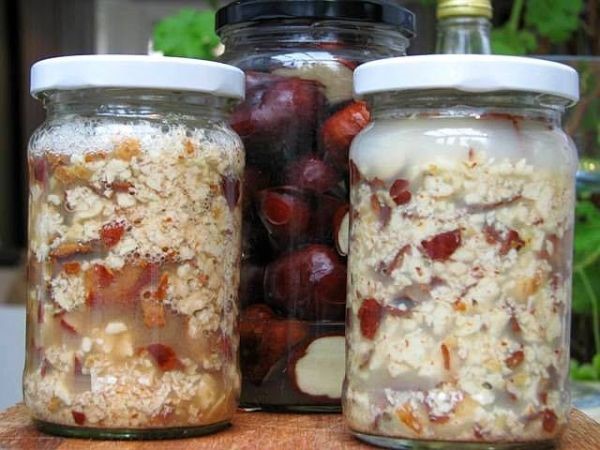 Старателно измийте един голям буркан и в него изсипете предварително смачканите кестени. Към тях добавете ракия и затворете съда. Оставете го да престои на стайна температура за 40 дни, като от време на време разбърквате сместа с дървена лъжица. Прецедете течността и я съхранявайте в друг подходящ съд с херметическо затваряне.