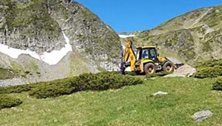 Тракторът горе сред 7-те рилски езера, където досега само туристически крак стъпваше. Снимка: Мирослав Теофилов, Фейсбук