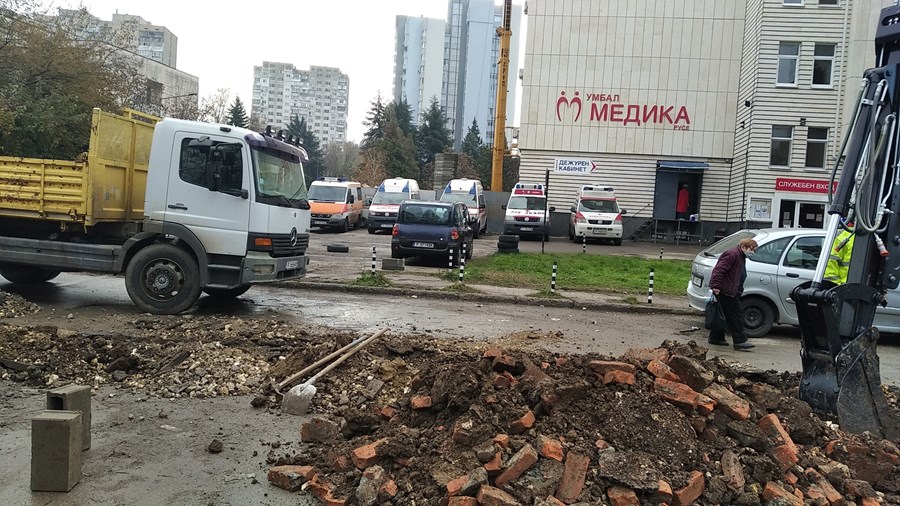 Багер скъса електрически кабел в района на УМБАЛ "Медика" в Русе.