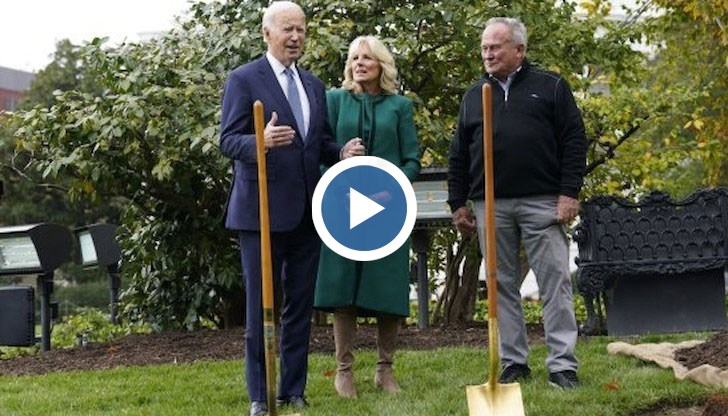 79-годишният президент и първата дама Джил Байдън току-що били засадили дърво в чест на 50-те години работа на пазача Дейл Хейни в Белия дом. След края на церемонията обаче, служителите трябваше да насочат Байдън в правилната посока.