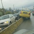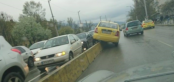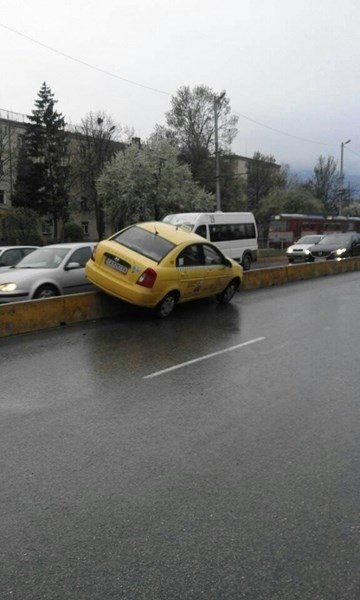 Таксиметров шофьор се размина по чудо само с незначителни щети, след като се качи върху мантинела, разделяща двете платна.