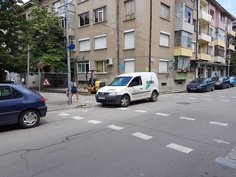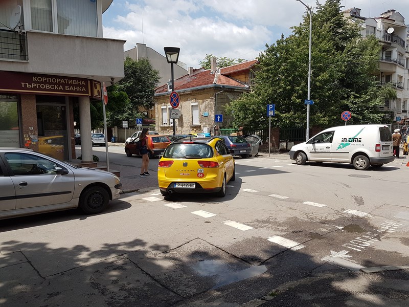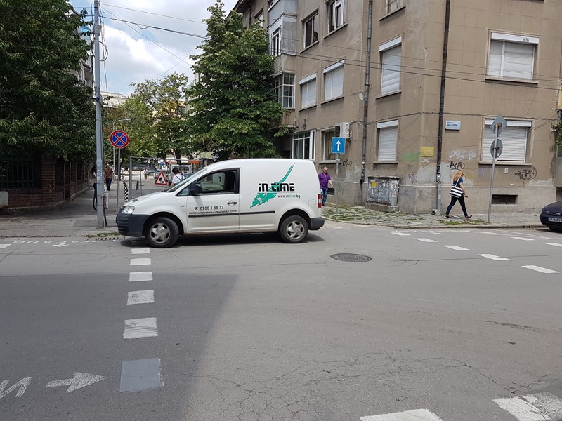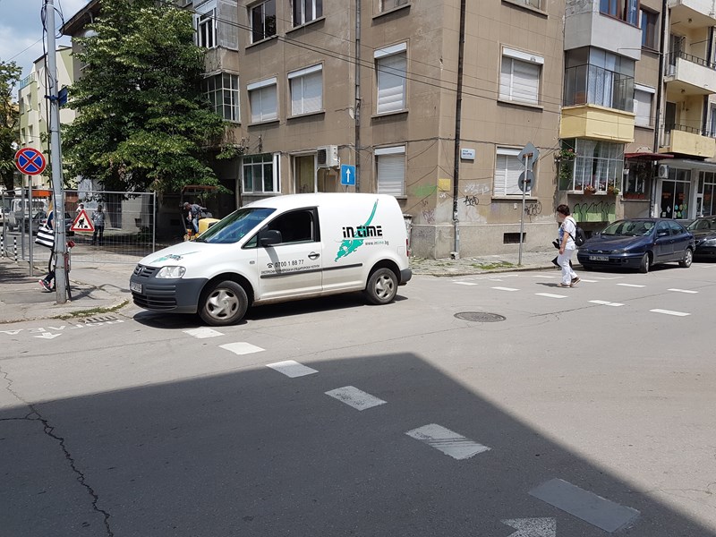 Един куриер и един бакшиш са паркирали в самото кръстовище между улиците "Хан Крум" и "Доктор Петър Берон". И двамата са спрели на пешеходна пътека, докато една лелка, отговаряща за платените паркоместа гледаше нарушителите съвсем безучастно. Най-вероятно жената се интересува само от това, дали може да им вземе парите за платен паркинг. А това, че са спрели като румънци на селски мегдан не я засяга особено.