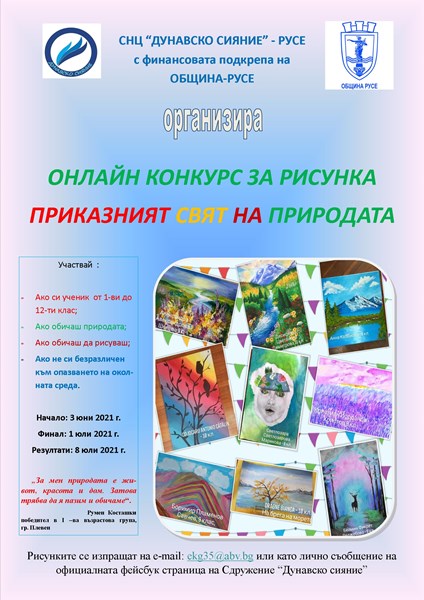 Онлайн конкурсът е водещото арт предизвикателство от поредицата инициативи, включени в авангардния проект на СНЦ „Дунавско сияние“ - ЛендАрт Творителница „Приказният свят на природата-2021“, финансиран по Програма „Култура“ на Община Русе.