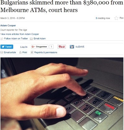Българска престъпна група е обвинена в незаконното теглене на 387 000 долара от банкомати в Мелбърн, Австралия, съобщава The Age, цитиран от 24 часа.