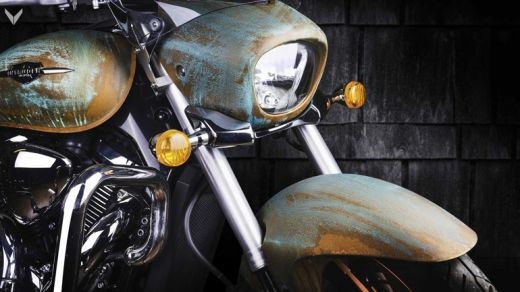 Мотоциклетът е първата машина на Vilner, която ползва покритие от новата палитра на ателието. Изпълнението в стил „патинирана мед” се постига с полагането на не по-малко от шест слоя боя, която се обработва със специални четки, при специални условия, за да се постигне изключително автентичен завършек, който е и много устойчив на атмосферните условия.