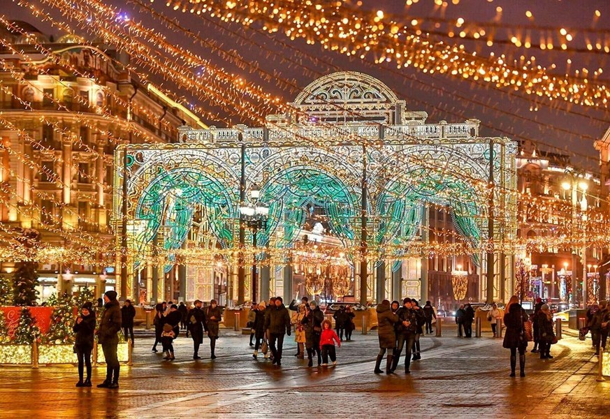 Пищна украса и истинска феерия от цветове и отблясъци. Така изглежда руската столица по време на Новогодишните празници.