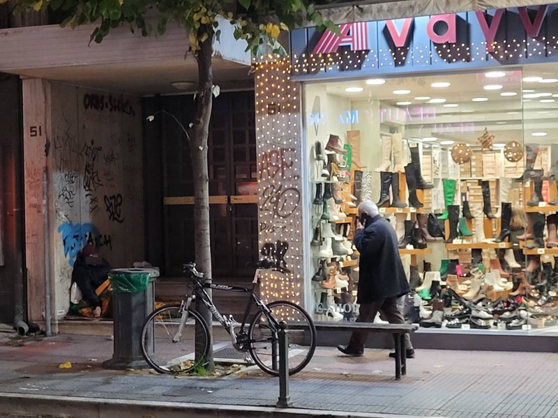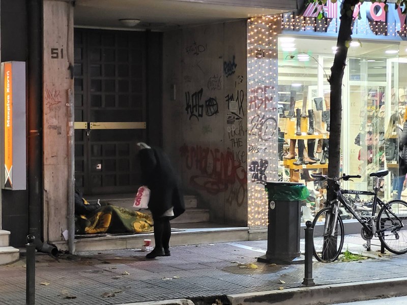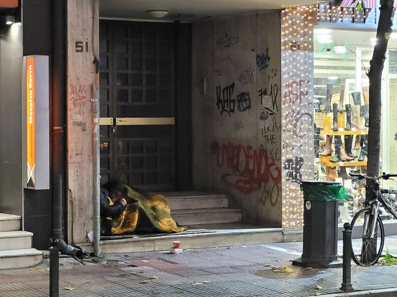 Бездомникът е баща на 5 деца и живее във входа на жилищна сграда в центъра на Лариса