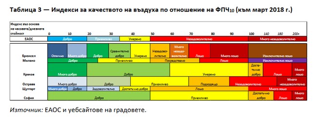 Документът посочва още, че европейските изисквания за качеството на въздуха, които са изготвени преди 20 години, са по-ниски от тези на Световната здравна организация и е необходима ревизия на пределно допустимите норми за замърсяване.