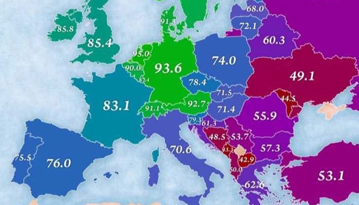 Това показва доклад за 2016 г. на „Бостън консултинг груп“ /BCG/, която е една от водещите световни компании за бизнес стратегии, показа БГНЕС. България има 57,3 точки и изпреварва Румъния /55,9 точки/, Сърбия /53,7 точки/, Турция /53,1 точки/, Албания / 50 точки/ и др. Пред нас са само трите балкански страни-членки на ЕС: Словения със 79,3 точки, Гърция и Хърватия съответно с 62,6 и 61,3 точки.