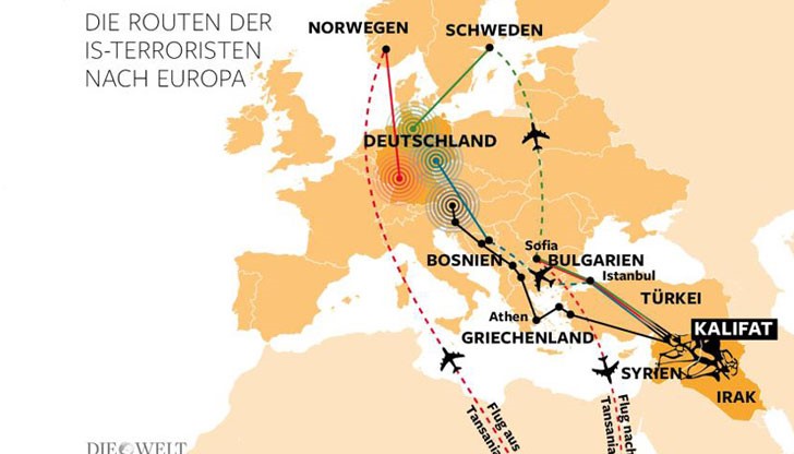 В списъка с целите на терористите са Германия, Ирак, Белгия, България, Русия и Франция, където са активирани групи от ДАЕШ /Ислямска държава/. Новият говорител на терористичната организация Абу Хасан ал Мухаджир съобщи това в телевизионния канал Ал Фуркан и призова поддръжниците на ДАЕШ за атентати по всички възлови структури на турските власти особено в Европа, пише проправителственият в. "Йени шафак“.