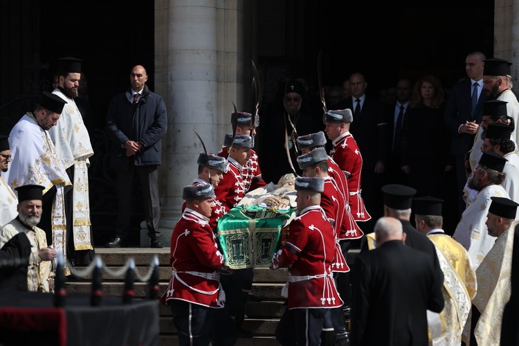 Патриархът беше изпратен с топовни салюти в присъствието на митрополити от Светия синод, духовници и от представителите на Поместните православни църкви, както и от всички, които се включиха в траурното шествие.