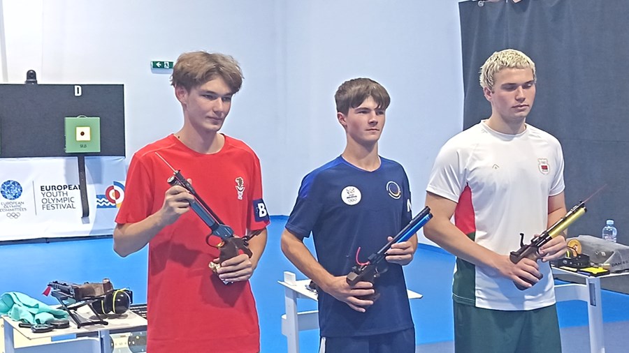 Дамян Илиев донесе първия медал за България от Европейския младежки олимпийски фестивал в Скопие. Младият стрелец спечели сребърно отличие в дисциплината 10 метра пистолет - соло, където се класира за финала и отстъпи на молдовеца Климент Урсу с една точка разлика.