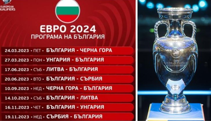Първите два състава от всяка една група ще се класират на Европейското първенство. Както е известно, "трикольорите", които в момента са водени от селекционера Младен Кръстаич, не са участвали на финали от Евро 2004-та година в Португалия. Родните национали ще стартират пътя си към голямата цел с домакинство на Черна гора. Двубоят е насрочен за 24-ти март и ще започне от 19:00 часа, а стадионът, който ще приеме срещата, е „Хювефарма Арена“ в Разград.