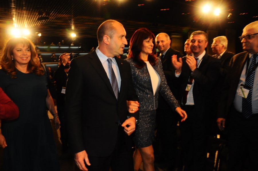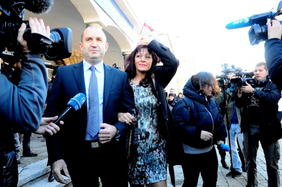 Жената на Румен Радев бе плътно до него след края на изборния ден.