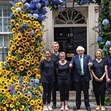 Преди това той показа солидарност по необичаен начин - макар и в оставка, поръча арка от слънчогледи пред офиса си на Даунинг стрийт, за да отбележи Деня на независимостта.