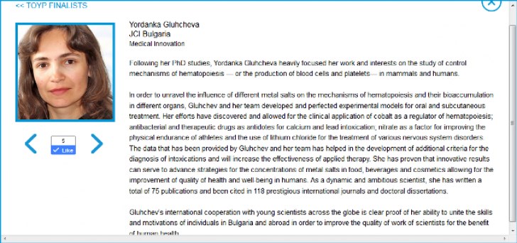 От днес до 25 август (петък) всеки може да даде своя глас за българката, като натисне бутона „Like“ на интернет адрес https://toyp.jci.cc/. Тези гласове ще бъдат включени към гласовете на международно жури, което ще определи 10-те най-изявени млади личности на света за 2017 г.