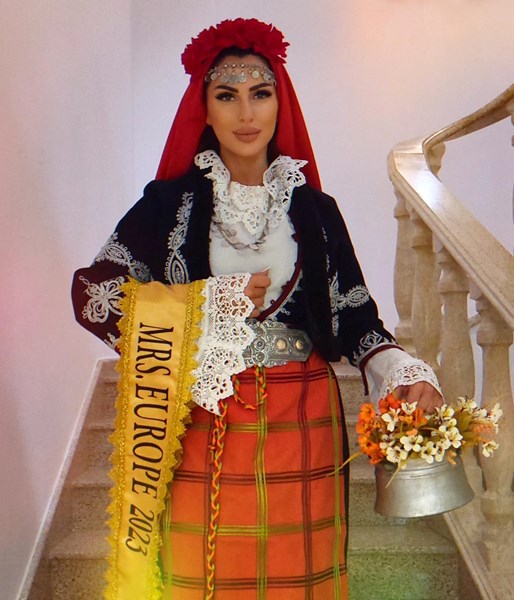 Един от кръговете на конкурса е бил с народни тоалети. „Носията е автентична родопска, с истинско менче, кобилица и стомни. Целият антураж е автентичен. Само тези неща се побраха в четири куфара”, каза тя.