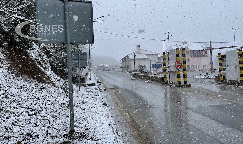 Между 0 и минус 1 градуса е днес на граничния контролно-пропускателен пункт Гюешево, вали и сняг. Обстановката е същата и от другата страна – на пункта Деве баир в Северна Македония, предаде репортер на БГНЕС.