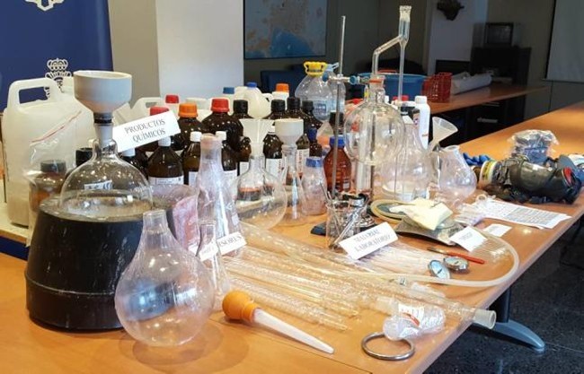 Там са намерени и 450 грама MDMA с отлична чистота. Също така огромен брой епруветки, пипети, филтри, маски за работа. В лаптопи и на листове ченгетата открили подробно написани формули за синтез на различни наркотици.