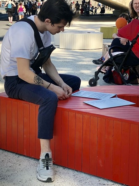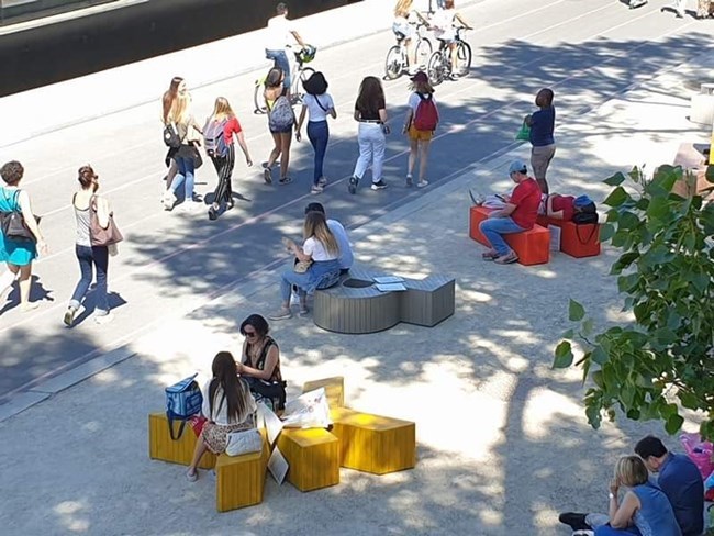Към всяка пейка са приложени стихове на български и френски на някой от най-интересните съвременни български поети, сред които Георги Господинов, Надежда Радулова, Силвия Чолева, Мирела Иванова, Амелия Личева и др. Преводите на стихотворенията са на Мари Врина-Николов и Ралица Михайлова Фризон - Рош.
