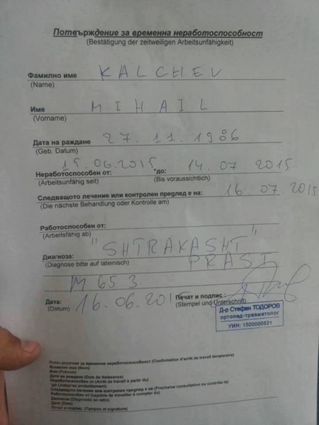 Ето и какво пише мъж, станал свидетел на уникалната случка: "Здравейте, изпращам ви снимков материал от диагноза на приятел. След като пострада при трудова злополука във Франция и след направената му спешна операция там, последва втора, която бе направена тук. От Франция му изискаха документ, който да удостовери какви манипулации са му правени тук и лекуващият го доктор, след като го прегледа и му постави диагноза, му издаде необходимият документ.