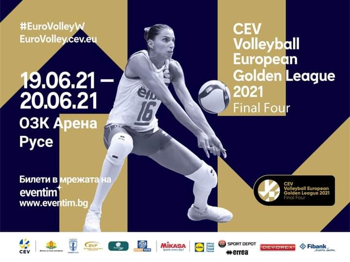 Женският национален отбор по волейбол на България ще играе срещу Чехия в полуфинала на Златната европейска лига в Русе този уикенд. Двубоят ще започне в 20 часа на 19 юни. Преди това, от 17:00 часа, Испания и Хърватия ще определят другия тим, който ще спори за отличието на следващия ден.