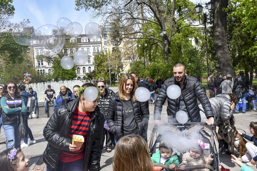 С акция "Балони на любовта" пред Народния театър в София, граждани се обявиха срещу родителското отчуждение.