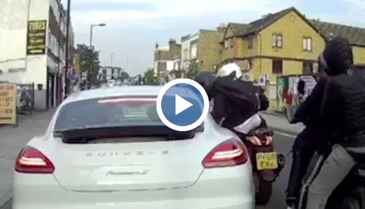 Шофьор на Порше е обран безмилостно след като е заплашен с нож от банда мотористи. Още по-шокиращ е фактът, че инцидентът става през деня на оживено място от британската столица, предаде БЛИЦ.