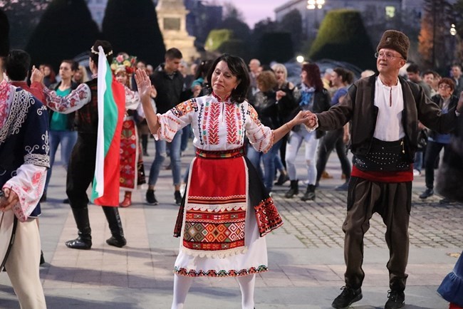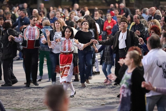 Диана Иванова и Пламен Нунев играят хоро по време на обгазяването в Русе.